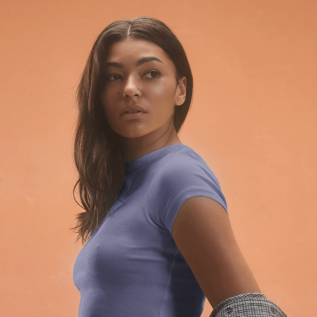 Close to skin fit. For a body hugging fit, we recommend sizing down from your usual size.